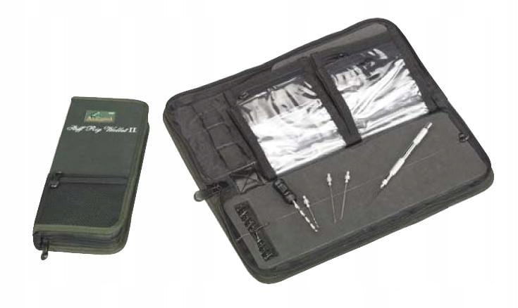 Ten praktyczny przybornik wyposażony jest w dwie wkładki z twardej pianki do mocowania przyponów i w 8 przedziałów na drobiazgi. Dzięki wszytym elastycznym gumkom we wnętrzu przybornika, wygodne miejsce znajdują również igły, wiertła itp.