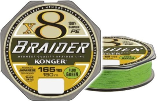 Wysokiej klasy plecionka wykonana z 8 gęsto splecionych włókien Dyneema. Pozwoliło to na uzyskanie okrągłego profilu plecionki, co w połączeniu z gładką powierzchnią zapewnia długie rzuty. Braider charakteryzuje się wysoką wytrzymałością liniową i na węźle. Ponadto plecionka ta jest mniej podatna na plątanie się na kołowrotku. Bardzo mała rozciągliwość Braidera sprawia, że jesteśmy w stanie wyczuć i zareagować na każde branie.