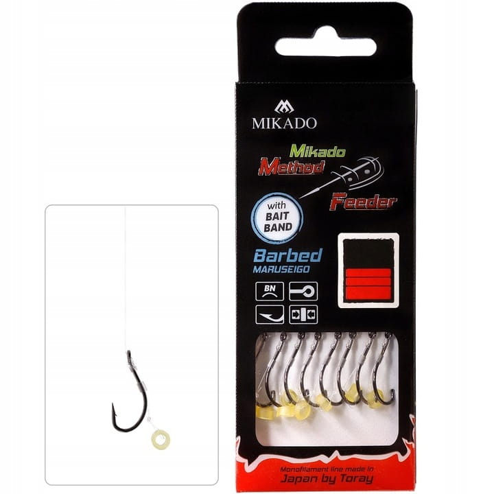 Gotowe przypony do method feedera. Dostępne w wielu wersjach - z włosem i gumką do pelletu oraz z haczykami z z zadziorem i bez zadziora. Zawiązane na najwyższej klasy żyłce z super ostrymi haczykami.