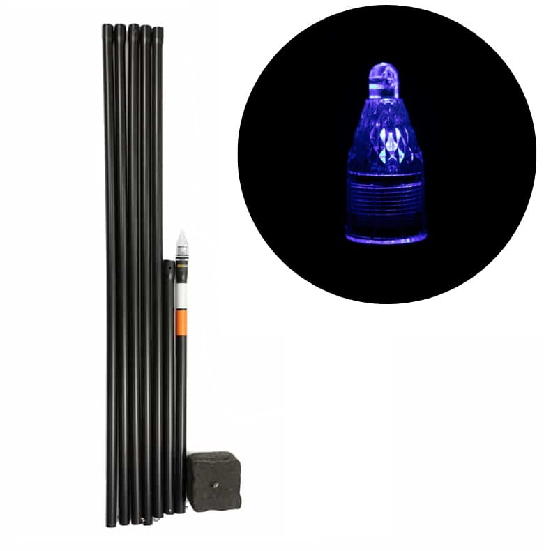 Długość markera 6 metrów (5×1m oraz 2×0,5 m). Diody dostępne w 4 kolorach: zielony, czerwony, niebieski, żółty. Dioda zasilana dwoma paluszkami AA. Czas świecenia od od 40 do 60 dni w przeliczeniu na godziny (od 960 do 1440 godzin). Sekcje markera łączone na proste i szybkie zatrzaski. Ciężarek odpinany, z systemem łączenia w środku rurki, więc nie ma możliwości o splątanie żyłki. Rurki w kolorze czarnym o średnicy 22 mm, dzięki czemu są znacznie wytrzymalsze i sztywniejsze. Zasięg widoczności do 500 m w przyjaznym warunkach pogodowych, zmieniliśmy klosz diody z okrągłego na nieregularny kształt. Dzięki temu światło bardziej się rozprasza i marker widoczny jest z większej odległości.