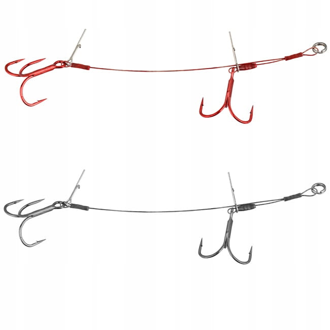Niezwykle wytrzymałe! Wysokiej klasy dozbrojki do przynęt spinningowych. Podwójne dozbrojki z kotwicami Savage Gear Y, z doskonale zaciśniętym materiałem Coated Carbon49. 1 szt. w kolorze Gunsmoke i 1 szt. w kolorze krwisto czerwonym w opakowaniu. Pętla posiada silikonową rurkę, pozwalającą na zamontowanie dozbrojki ponad oczkiem główki jiggowej.